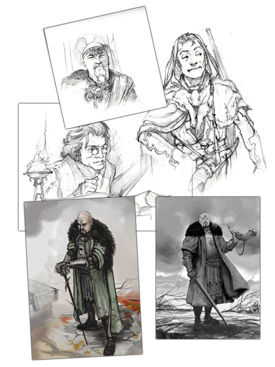 Also, we are still working on the portraits and characters of the Lords of Shadows, and of our faithful Seòl Patrons. Here are some of them on your left (click to enlarge).